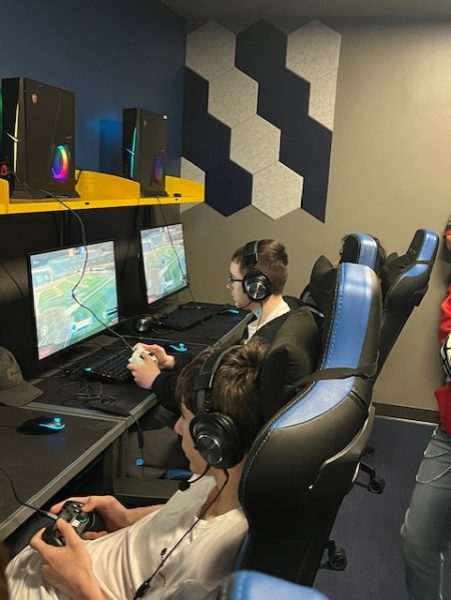 The Esports team operates similar to a club. The team meets every Thursday after school in T-7, where players “practice together and prepare for upcoming events”, such as competitions. Competitions are themed to a specific game–with the last one being focused on Rocket League. These competitions typically last four to five hours on a Saturday at Southern New Hampshire University (SNHU)’s Esports gaming arena. Paul describes how to determine a team’s placement on a bracket–similar to March Madness–there is a round of “Red Robin”, which is a warmup and evaluation round for each team. Once bracket placement is secured, teams play against each other on a single elimination basis. These competitions are streamed on Twitch for anyone to watch.